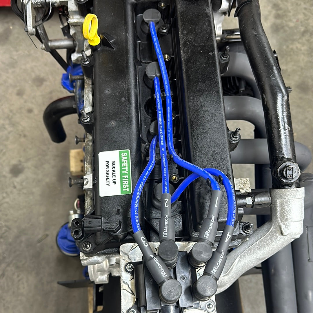 This is a set of custom built plug wires to seal the holes around the spark plugs and keep the dirt out. These are purpose built by Magnecor for XL1. To be used with coil mounted to the rear of the engine.